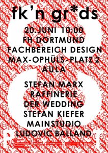 Mehr erfahrenZum vierten Mal veranstaltet die Fachhochschule Dortmund, am FB Design das bahnbrechende Typografiesymposium, welches sich diesmal unter dem Motto 33pt – fkʼn gr*ds – präsentiert. Nach bereits signifikanten und internationalen Größen der Design- und Typografieszene in den Jahren 2006, 2009 und 2012, freuen wir uns diesmal auf folgende Stargäste: Stefan Marx, (Hamburg), Raffinerie (Zürich), den […]